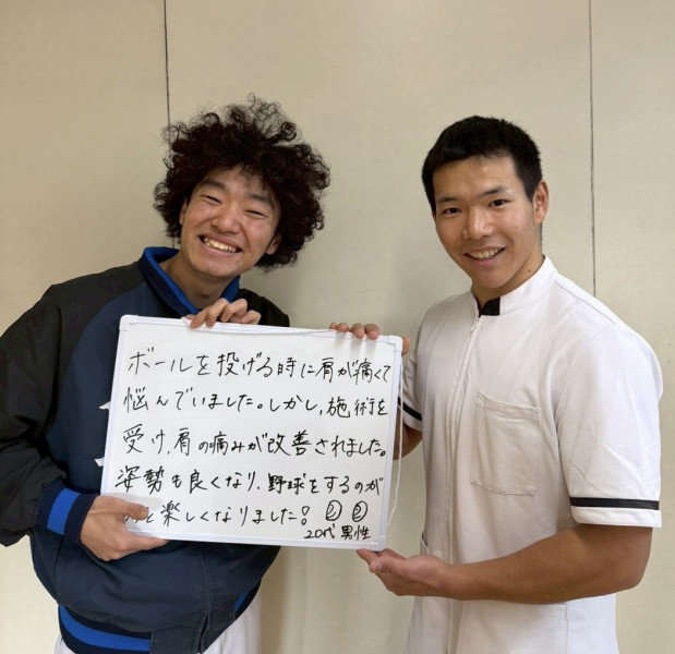 「痛みを気にせず投げれるようになった!」 半年ほど前から試合の翌日に肩が上がらないほどの重だるさと痛みが出るようになり、年齢のせいだと諦めてYouTubeのストレッチやマッサージで誤魔化していました。 こちらで施術を受けたところ、今では試合後の疲労感が劇的に減り、痛みや引っかかりを気にせず全力でプレーできるようになりました。自己流のケアで長引かせるより、長く野球を楽しむために一刻も早く先生に相談することをおすすめします! (K.O20代男性 板橋区在住) ※効果には個人差があります |