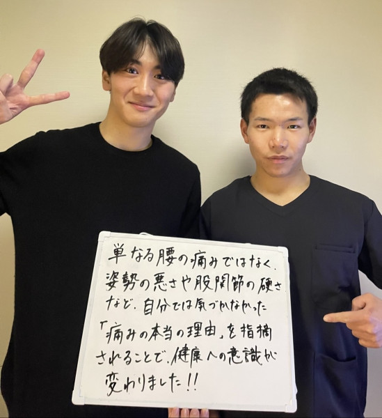 数年前に靴を履こうとして屈んだ際にギックリ腰に初めてなり、それからギックリ腰を繰り返すようになり根本から改善したい!という思いで受診するようになりました。 別の整骨院には3件ほど通院した経験はありましたが、根本的な改善に対して期待できませんでした。しかしこちらの整骨院では根本的に体を変えるために姿勢を整える!という事をカウンセリング時に言って頂けた事で繰り返し起こるギックリ腰の原因が明確にわかりました。様々な検査を受ける事で自分の現状を知る事ができ、施術中も痛みがなく心地よい施術でした! 先生の方から「最近姿勢が悪くなったわけではないので、治療にも時間が掛かりますが一緒に健康な体になりましょう!」と言って頂き、改めて健康に対して目を向けようという気持ちになれました! (I.E様 20代男性 杉並区在住) ※効果には個人差があります |