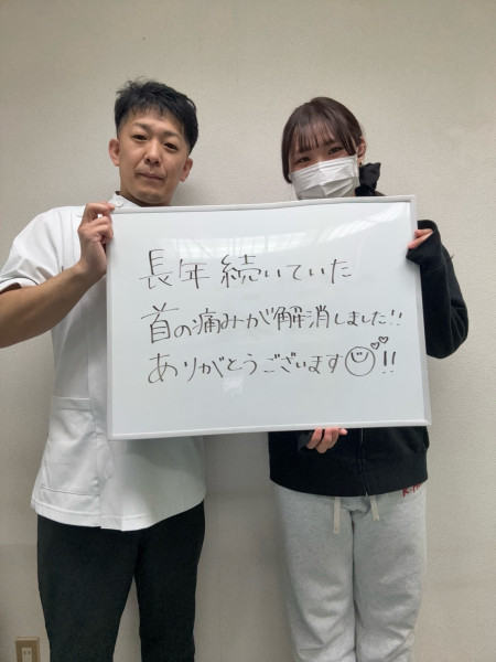 「気圧の変化による頭痛・喉の圧迫が改善しました‼︎」 ホームページを見て先生に連絡をしました。 症状は気圧の変化による頭痛、 常にあるのど、胸、横隔膜の圧迫感に悩まされてきました。 病院で検査を受けても異常が見つからず困っていました。 そして生活にも支障が出てきてしまいました。 とても話しやすく優しい先生で、今までとは違う治療法を受けました。 自分は姿勢が良いと思っていましたが 実は肩がかなり前に出ていて、 まずは姿勢の矯正をめざしていきましょうとお話しをして下さいました。 そうする事で長年私の悩んでいる事にアプローチしていけるとわかり、 色々と説明してくださる中で、気づきが多多くありました。 また、先生の施術を受けたいです。期待をしてまた来ます。 先生、今後ともよろしくお願いいたします。 ※効果には個人差があります |